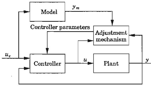 In control theory, there is a long tradition of adaptive control and model-reference adaptive control (MRAC) which utilize a (model-based) adjustment mechanism to modify the parameters of the controller.