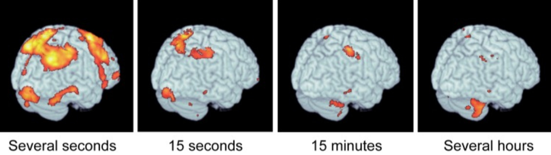Cerebellar timescales (seconds to minutes) match closely with the motor adaptation timescale referred to above, and several research efforts identify its role in adaptation of behavior in that time range.